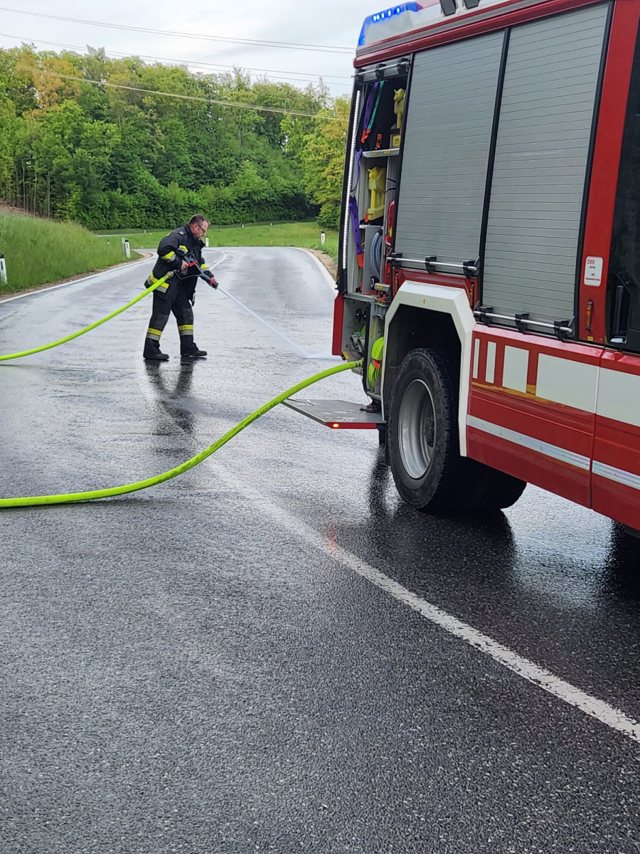 Die erste Maßnahme der Einsatzkräfte bestand darin, die Einsatzstelle abzusichern und den Verkehr zu regeln. Aufgrund der Lage des Fahrzeugs war eine rasche und professionelle Verkehrslenkung notwendig, um die Sicherheit aller Verkehrsteilnehmer zu gewährleisten.