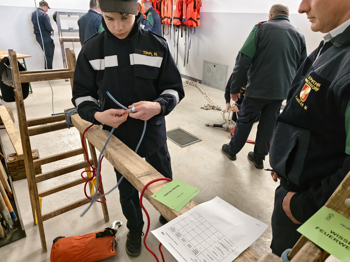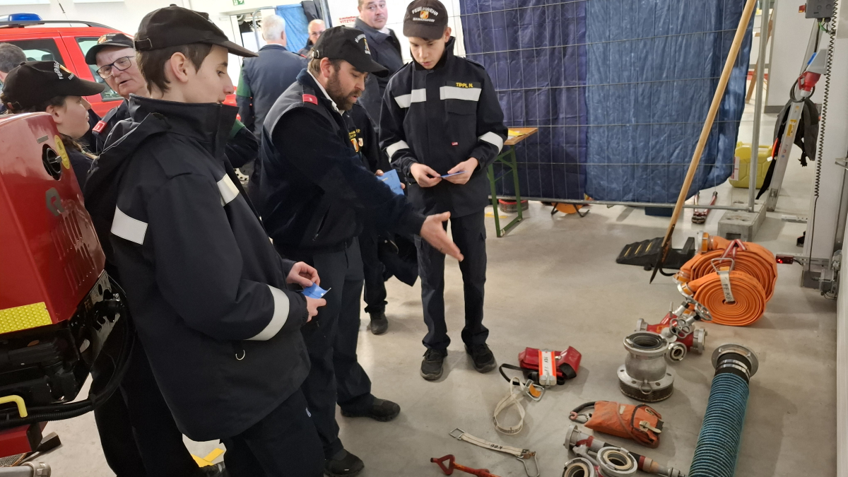Die Jugendlichen mussten dabei mehrere Stationen absolvieren – darunter ein Testblatt, das Erkennen und Erklären von Geräten für den Brand- und technischen Einsatz, Dienstgrade, Knotenkunde sowie das richtige Verhalten im Brandfall.
